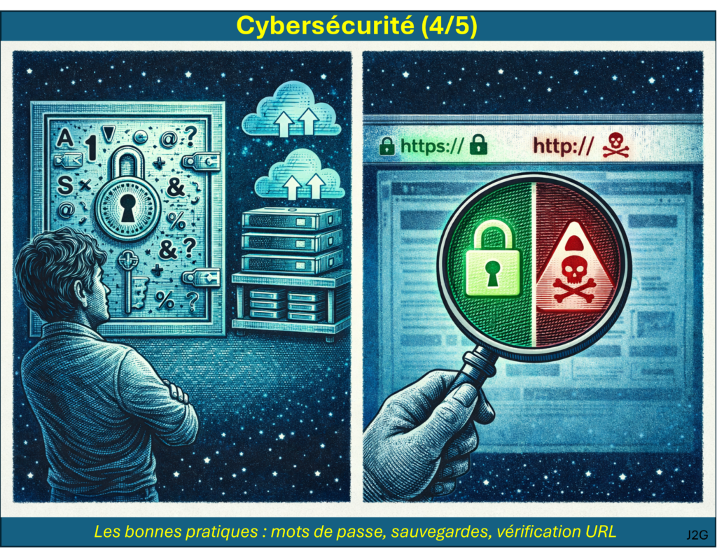 Enfin, dans la dernière partie, on liste les bonnes pratiques de sécurité pour une vie numérique sereine, avec notamment un bon gestionnaire de mots de passe (open source si possible), une attention à la vérification des adresses internet (URL) et l’usage de l’authentification à deux facteurs.