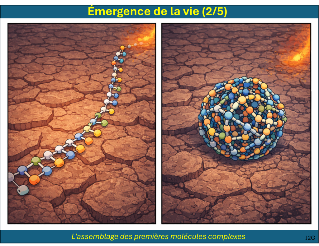 Dans cette conférence, l’émergence de la vie est étudiée sur 3 niveaux. D’abord au niveau physique, avec le rôle clé du carbone et de l’eau, puis au niveau biologique, avec ses composants de base et les différents types de cellules : procaryotes et eucaryotes. En particulier, on suit le parcours de l’ATP, la principale monnaie énergétique de la cellule, et on étudie le fonctionnement de l’ADN et de l’ARN dans la reproduction et la fabrication des protéines. En guise d’illustration, le mécanisme des vaccins à ARN est explicité.