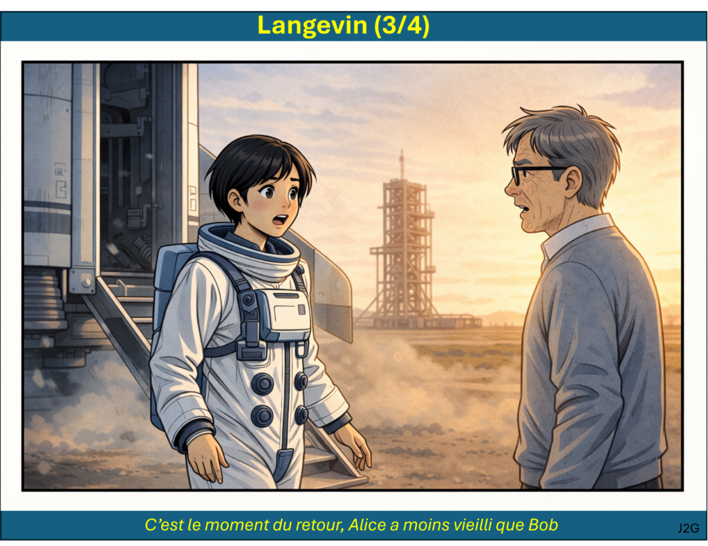 Ci-dessous, une petite BD qui illustre l’histoire des jumeaux de Langevin développée dans la conférence.